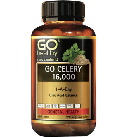 GO CELERY 16,000 offers a high-potency Celery extract in an easy-to-take 1-A-Day capsule. Celery is known to assist in maintaining healthy uric acid levels, supporting kidney function, and aiding in fluid management.