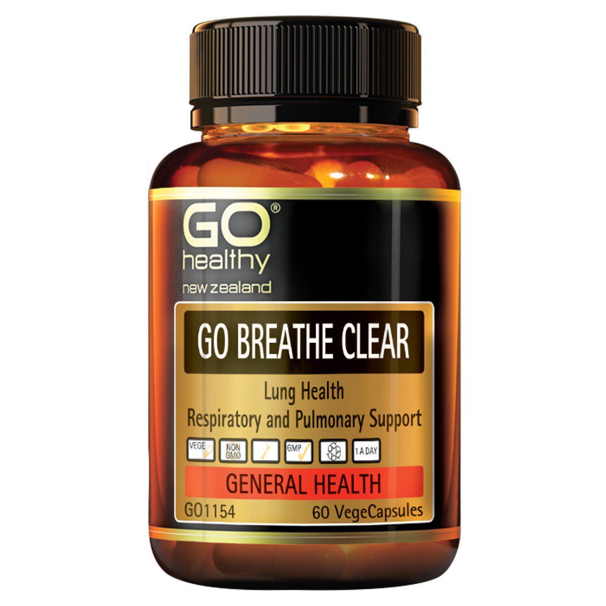 GO BREATHE CLEAR is a comprehensive formulation that provides natural support for healthy respiratory and pulmonary function. The combined ingredients help to support lung health, clear airways and healthy breathing.