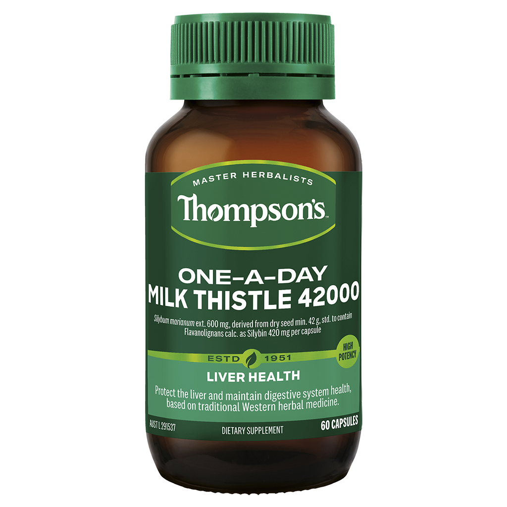Thompsons Milk Thistle 42000 One-A-Day supports healthy liver function and aids digestion.
