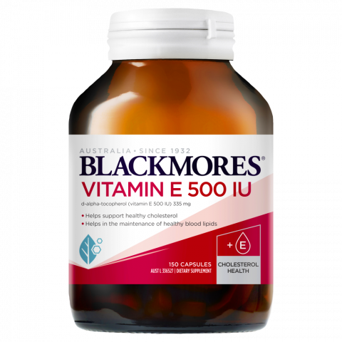 BLACKMORES VITMAIN E 500 IU is a high strength source of natural vitamin E which helps support heart and blood vessel health and healthy cholesterol levels, by supporting antioxidant defences against the oxidation of LDL-cholesterol ("bad" cholesterol).