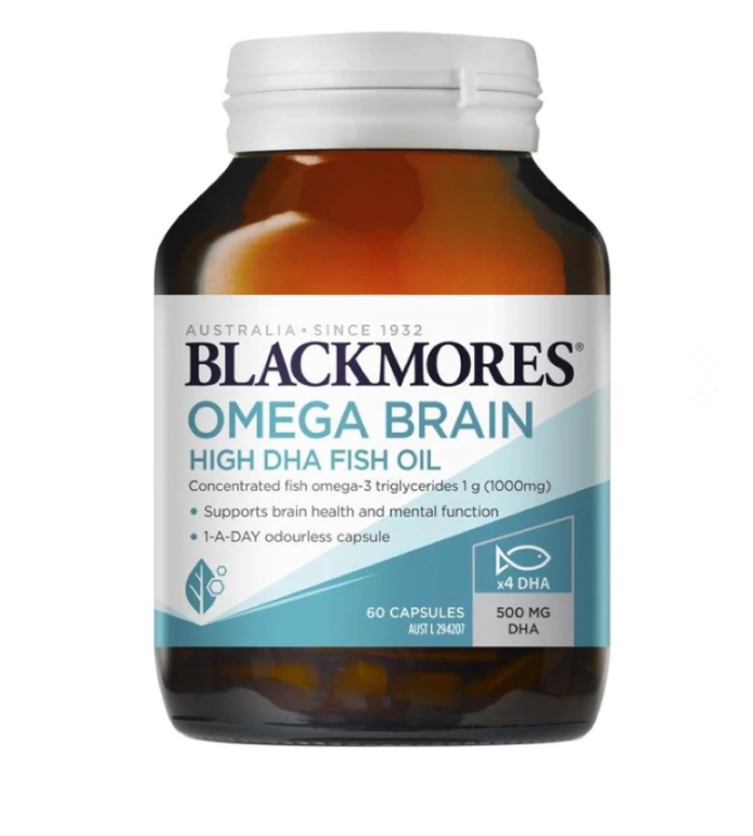 BLACKMORES OMEGA BRAIN HIGH DHA FISH OIL is a source of concentrated omega-3 fatty acids, optimised for DHA to support the structure and function of a healthy brain, and healthy mental processes.