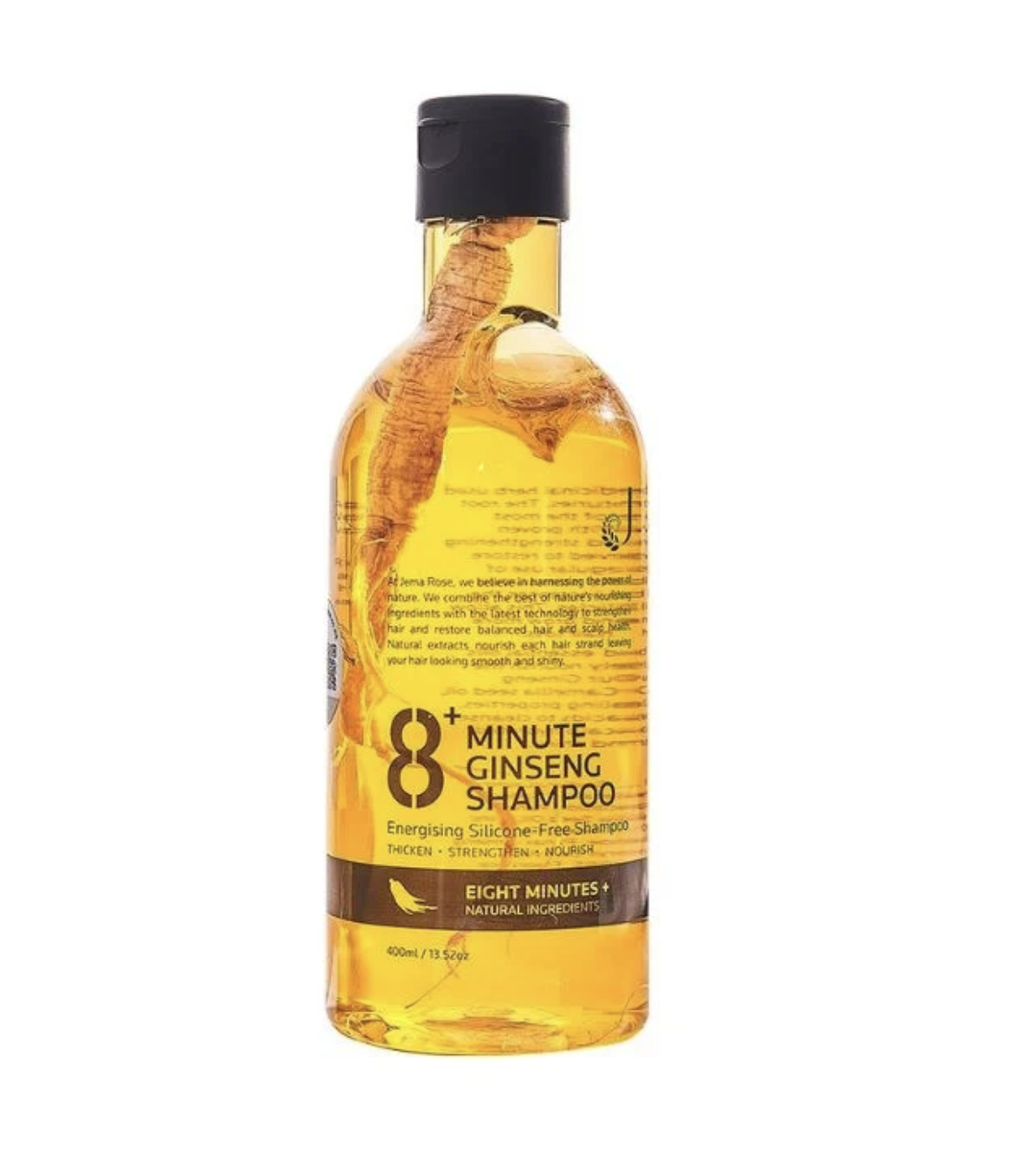 Jema Rose 8+ Minute Ginseng Shampoo is made from nature's nourishing ingredients using the latest technology to help strengthen hair and boost scalp health. It is rich in Ginseng extract, a widely-known medicinal herb with proven rejuvenating, restorative and strengthening properties. While Camellia Seed Oil with its Omega-9 fatty acid content provide hydration to the scalp while making hair healthy, shiny and strong. Regular use of ginseng-rich shampoo will help stimulate circulation in the scalp and boost nutrient flow to the hair follicles.