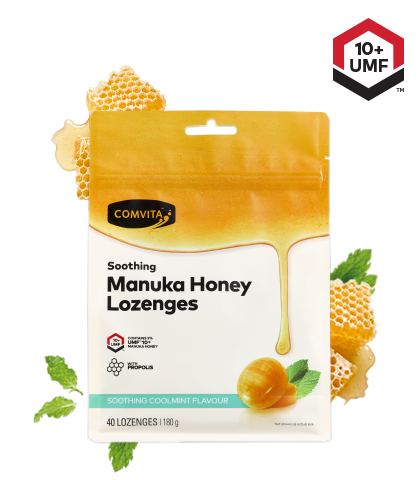 Comvita® Manuka Honey Lozenges with Propolis combine the soothing qualities of UMF™ Manuka Honey with the power of Propolis. Soothing Coolmint flavour.