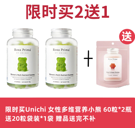 【限时买2送1】Unichi 女性多维营养小熊 60粒*2瓶 保质期:2025.02 送20粒袋装*1袋