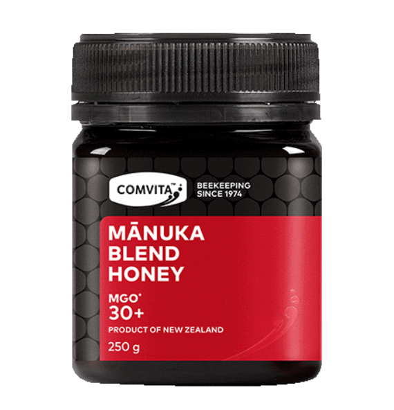 Comvita's Manuka Blend Honey MGO 30+ 250g is a premium blend of Manuka Honey from New Zealand's bountiful hives to deliver balanced nutrition and natural energy. Tested for MGO levels of 30+, this honey is packed with bioactive benefits for your health, containing naturally occurring antioxidants and enzymes for a dose of natural goodness.