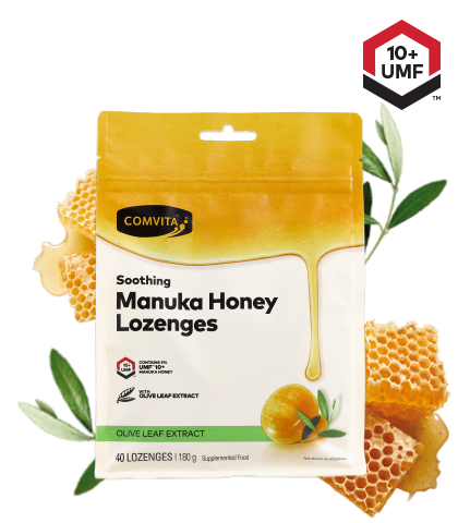 Comvita® Manuka Honey Lozenges with Olive Leaf Extract combine the soothing qualities of UMF™ Manuka Honey with the power of Olive Leaf Extract.